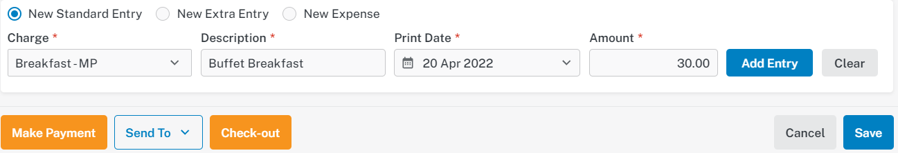 2. Select the Charge type (e.g. Breakfast). This is the revenue account you want the income to go into