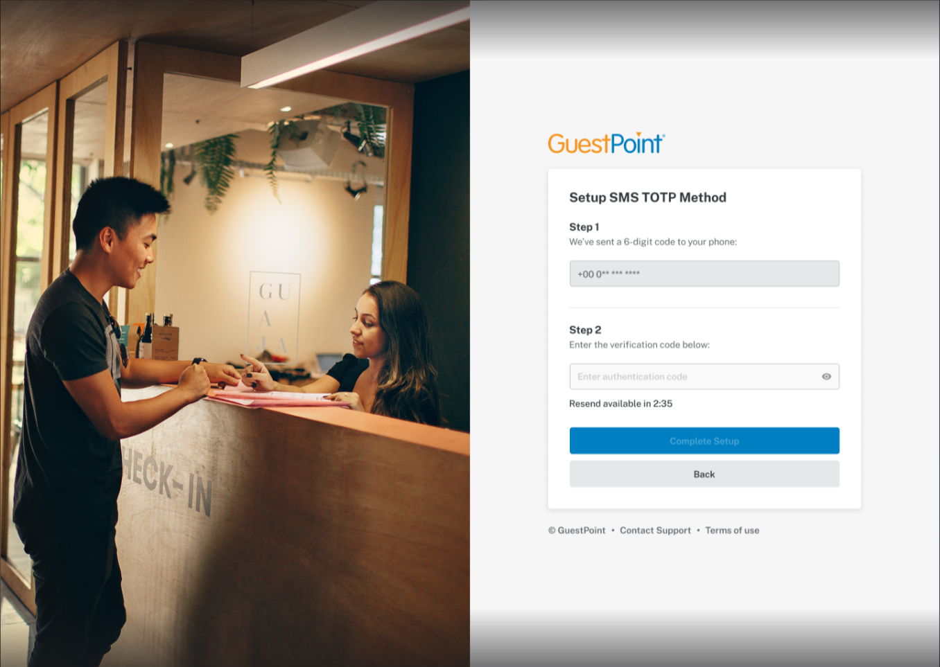 How it works: When logging in, you will receive a text message containing a code that you must enter into GuestPoint.