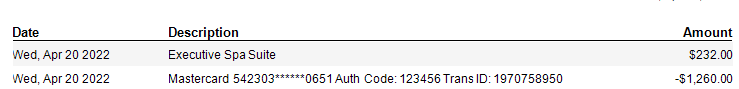 refund, change the description (e.g. “Refund of breakfast charges”) and enter the amount